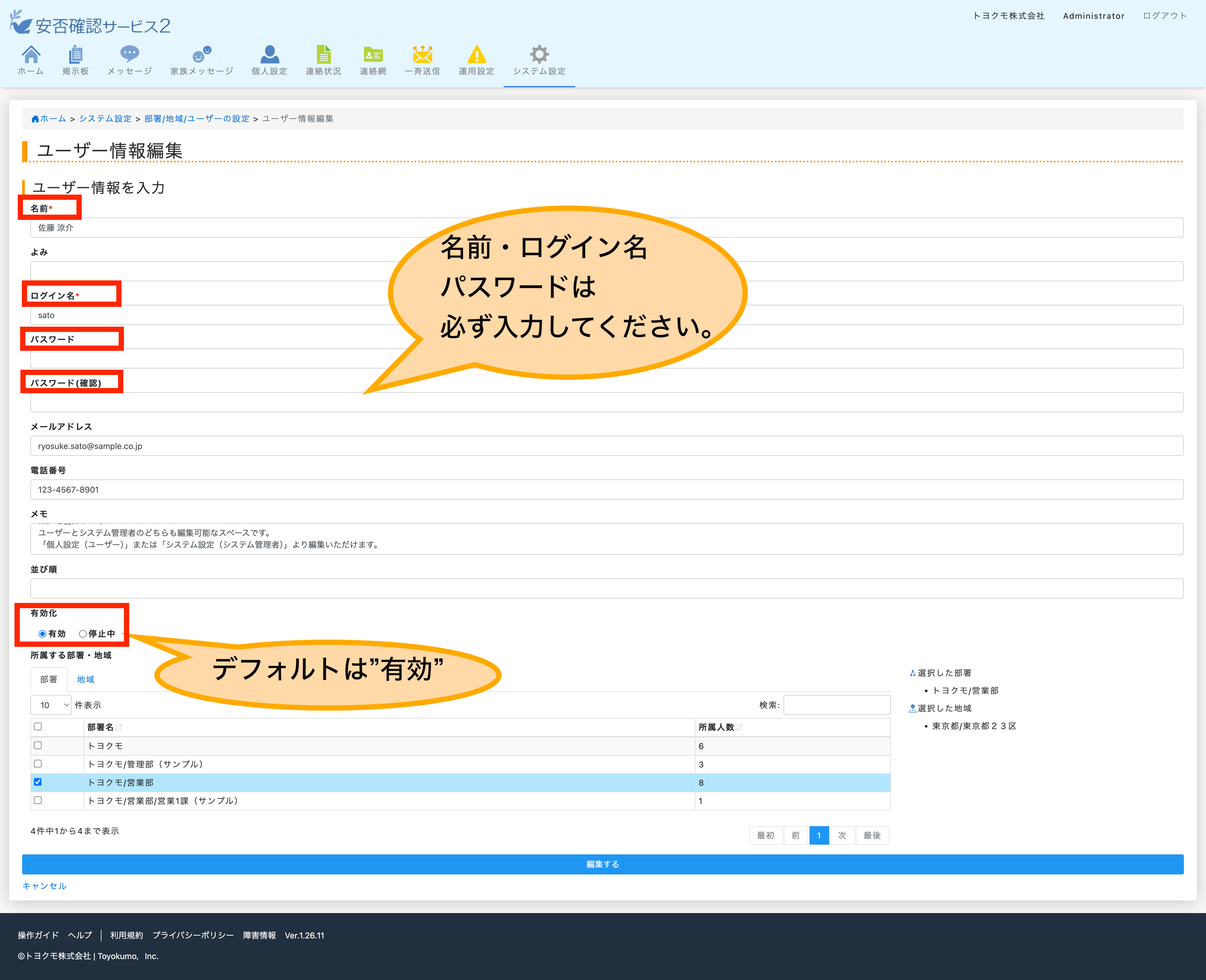 また、登録数に制限なく所属部署と所属地域を登録できます。